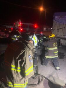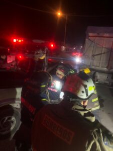 El accidente se registra a las 22:39 horas en la carretera 70 san Luis -Rioverde a la altura del cabal de la media luna donde hay varios lesionados y tres personas prensadas las cuales están graves .