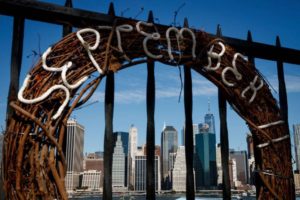 Una corona conmemorativa recuerda a las víctimas mortales del 11-S.