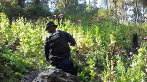 La Policía Federal de México, a través de la División de Fuerzas Federales, destruyen en el municipio de Leonardo Bravo, Guerrero 14 plantíos de amapola.