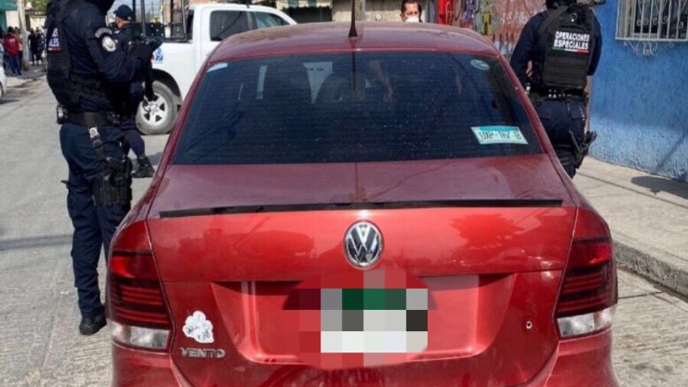 Uno de los individuos portaba un arma de fuego tipo escuadra calibre 22 con la que logró hacer algunas detonaciones, junto con su acompañante se trasladaba en un vehículo Vw Vento modelo 2021 en color rojo con placas de circulación de SLP, el cual cuenta con reporte de robo con violencia del día 22/01/2022.