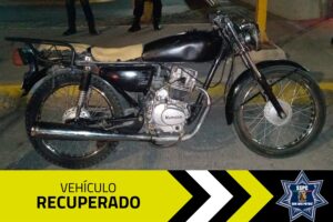 SLP.- Como resultado de los recorridos de prevención de la Secretaría de Seguridad y Protección Ciudadana (SSPC) en los diversos cuadrantes de la ciudad, se logró la recuperación de dos motocicletas que contaban con reporte de robo vigente, así mismo se consiguió el aseguramiento de dos persona, un hombre y una mujer, que fueron encontradas en posesión de dichas unidades.