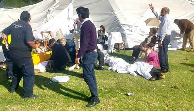 Trascendió que, las estructuras metálicas de la carpa golpearon por lo menos a 20 personas.