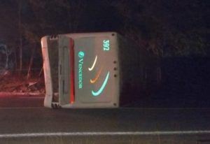 Un autobús de la línea Transportes Vencedor, con número económico 392, que había salido de Coxcatlán con destino a Valles, se volcó, en una curva que se ubica a la salida de la delegación de El Pujal con rumbo a la gasolinera del poblado.