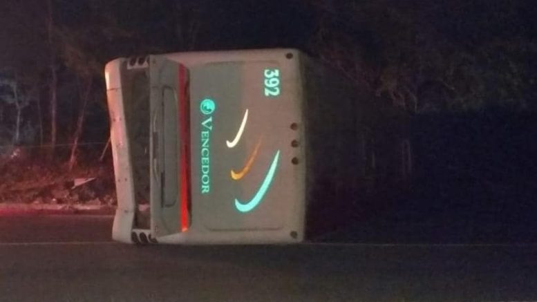 Cinco personas lesionadas fue el saldo de un accidente de un autobús de Transportes Vencedor la madrugada de hoy