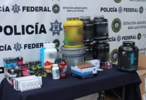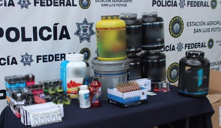 En una empresa de paquetería del Aeropuerto de San Luis Potosí, elementos de la policía federal detectaron en seis cajas de cartón, más de 15 kilogramos de suplementos alimenticios y 5 mil 715 tabletas de anabólicos, sin documentación que acredite su legal procedencia.