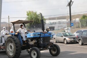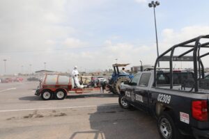 Sanitizan oficinas y estacionamiento de la SSPE