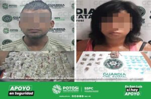 A principios de febrero del presente año, se detuvo a una pareja de presuntos que viajaban en un automóvil en la carretera federal 49 en Salinas de Hidalgo; se les decomisaron más de 6 kilogramos de marihuana y casi 3 kilos de “cristal”.