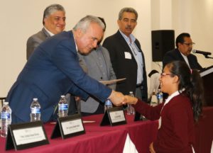 Al hacer uso de la palabra en representación de los alumnos, la alumna Paola Abigail Rodríguez Chávez, de la Escuela Primaria Justo Sierra de la capital, quien obtuvo el promedio más alto a nivel Estatal (98.7342) en el Examen de la Etapa Censal, solicitó al Secretario de Educación que este concurso siga adelante con el deseo de que permanezca como una relevante motivación académica y dijo que: “los maestros son una pieza muy importante para que nosotros hayamos alcanzado este éxito, sin ustedes nuestra formación no sería la misma, ustedes llegan a cambiar la vida de muchas niños que como yo tenemos sueños y queremos cumplirlos, gracias porque su esfuerzo, dedicación, constancia y conocimiento que nos transmitieron el día de hoy rindieron frutos”.
