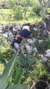 En la zona, fue localizado otro cuerpo de una persona del sexo masculino de aproximadamente de 27 años de edad, complexión delgada, tez morena, vestimenta tipo pandillero, que presentaba varias lesiones y fracturas.