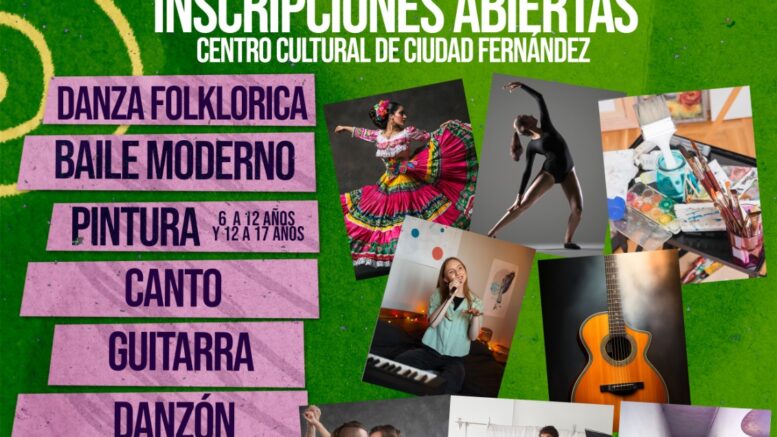La licenciada Adriana Solano, actual directora del Departamento de Cultura del municipio, anunció que ya están abiertas las inscripciones para los talleres del Centro Cultural de Ciudad Fernández. Este espacio se dedica a ofrecer diversas actividades artísticas para jóvenes y adultos, abarcando desde los 3 hasta los 15 años.
