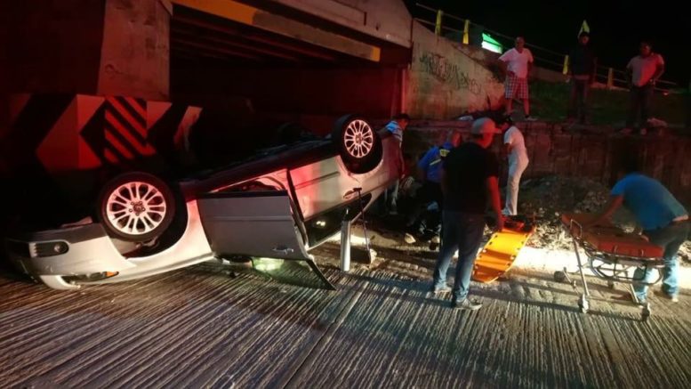 Un adulto mayor resultó lesionado en una volcadura en Circuito Interior Río Santiago, así lo informa la Dirección General de Seguridad Pública Municipal de Soledad .