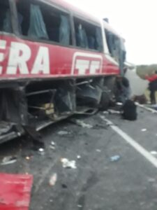 San Luis Potosí, SLP.- Un fuerte accidente ocurrió hace unos momentos en el libramiento Oriente, entre un autobús de pasajeros y un tráiler.