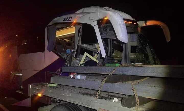 La madrugada del sábado, se recibe el reporte de un accidente entre un autobús de pasajeros y un tráiler de plataforma en el km 104 de la Carretera 70 Rioverde – Cd. Valles