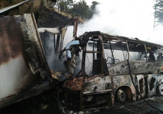 Lo anterior, luego de que un autobús de pasajeros de la línea ADO se impactara contra un camión de doble remolque, por lo que los pasajeros tuvieron que salir por las ventanillas.