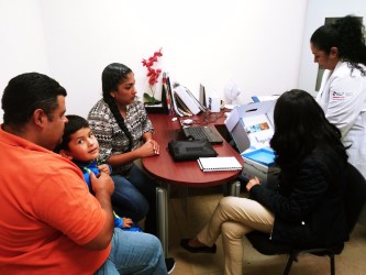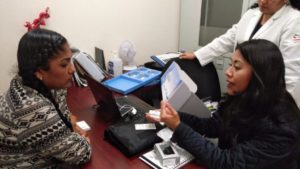 Por su parte, la audióloga Miriam Camacho pertenece a la empresa que provee el dispositivo, explica paso a paso a los padres la forma de operar el procesador, el control y cómo estimula el implante, les habla de que es un aparato de última generación que incluso puede ser usado en agua, y cuyo costo es muy elevado, que es costeado por la Secretaría de Salud y el Seguro Popular para este Programa en especial.