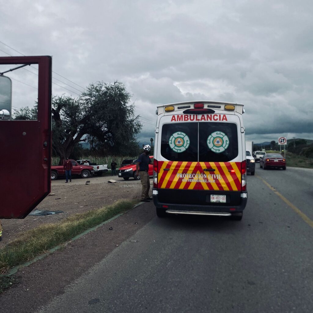ciudad Fernandez , S.L.P., 9 de septiembre de 2025. — El choque registrado esta tarde entre un sedán y un tráiler en el puente de Adjuntas dejó como saldo tres personas lesionadas, una de ellas reportada en estado grave.