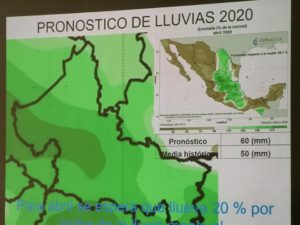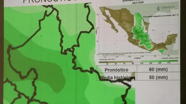 El pronóstico para el mes de febrero, va a estar por debajo de la media histórica de 19 mm, se prevé se generen 14 mm de lluvia. En marzo, tampoco va a llover, se pronostica que caigan 20 mm de precipitación, su media histórica es de 27 mm; pero para abril, existe la esperanza de que supere la media histórica, de los 50 mm, se estima que caigan 60 mm. El mes de enero, supero la media histórica.