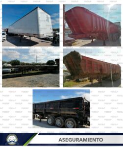 Los semirremolques asegurados que corresponden a tolvas y cajas secas, fueron llevadas a una pensión para su resguardo, en tanto, se realizan las investigaciones pertinentes y se determina lo conducente conforme a la normatividad.