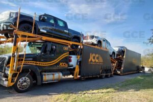 El automotor fue asegurado aún con 4 vehículos que transportaba marca GMC, tipo Sierra y marca Chevrolet.