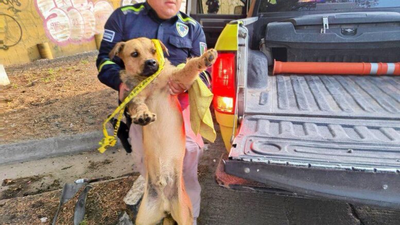 Agentes de la SSPC Capitalina rescatan en avenida Muñoz a un can seriamente lastimado