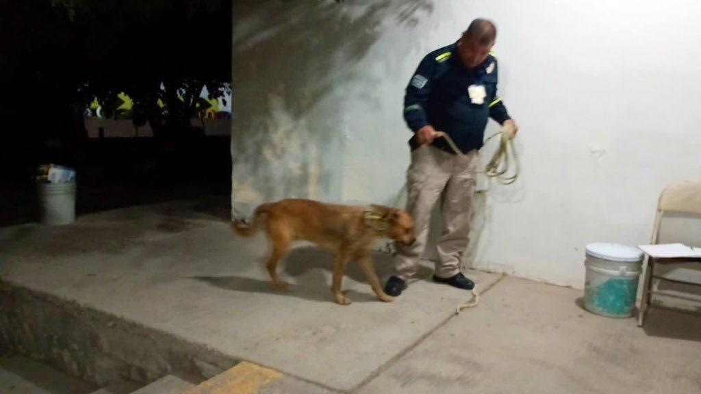 Agente de la Policía Vial de la Secretaría de Seguridad y Protección Ciudadana Municipal auxiliaron un can severamente lastimado, que fue localizado sobre la Avenida Muñoz a la altura de la curva hacia Capitán Caldera, una zona de alto tráfico vehicular, donde corría el riesgo de ser atropellado.