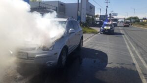 El hecho se registró siendo las 16:00 horas de este martes en la lateral de carretera 57 frente a la empresa TBC México entre los Ejes 106 y 108, donde una camioneta marca Chevrolet, color gris, fue detectada con una densa capa de humo que salía del cofre, situación por la que los oficiales detuvieron la marcha para auxiliar a la conductora de la unidad.