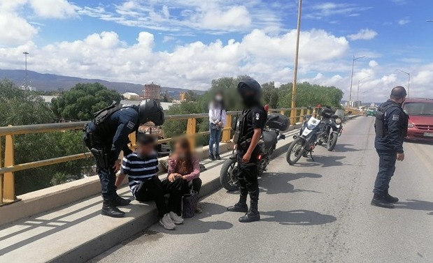 SLP.- En una oportuna intervención, agentes de la Dirección General de Seguridad Pública Municipal (DGSPM) adscritos a la Comandancia Centro y Grupos Especiales lograron prestar auxilio y resguardar a un joven de 16 años que presuntamente a causa de una crisis emocional intentó arrojarse desde la cima del puente Valladares, ubicado en el barrio del Motecillo.