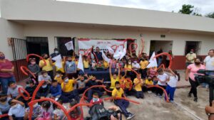 El alcalde Arnulfo Urbiola Román enfatizó que estará de regreso con los alumnos y alumnas, y con apoyo de su esposa la titular del DIF Karina Quintero les llevarán más apoyo porque era evidente que traen ganas de estudiar.