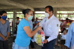 Al momento de realizar la entrega de despensas conteniendo artículos de la canasta básica, contando para ello con la colaboración de las autoridades de cada comunidad, refrendó su compromiso de apoyar a la población, sobre todo en este tipo de situaciones emergentes.