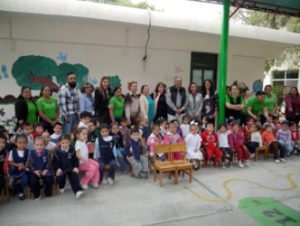 Después de ahí, las autoridades se trasladaron a la Estancia Infantil “Diana Laura Riojas de Colosio” y Jardín de Niños “Julián Carrillo” de la colonia Rotarios, donde se inauguró el techado del área cívica, con medidas de 10 x 16 metros, haciendo un total de 160 metros cuadrados, con valor de 155 mil 357.54 pesos, en beneficio de 98 niños.