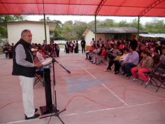 Agradecieron la obra, el niño José Alejandro Alvarado Reyes, y la Directora del plantel Delia Edith Trejo Díaz, quien especificó que el techado es de gran utilidad para desarrollar las actividades planeadas, y mencionó que además protegerá a los alumnos del tizne que produce la quema del bagazo en el ingenio azucarero cercano al plantel.