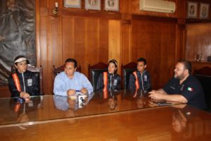 Fue en el salón de Cabildo de la Alcaldía, en donde el Presidente Municipal José Ramón Torres García, de manera conjunta con el Delegado Municipal delo Deporte, Juan Noé García Martínez, recibieron a la delegación de atletas que estaban por partir al norte del país, encabezados por sus entrenadores Luz Elena de la Tejera Segura, Claudia Escalera y René Eduardo Ortíz Morales.