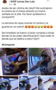 En las publicaciones se sabe que son varios casos los registrados en negocios de la zona rosa de lomas , donde se observa que dos mujeres aprovechan la distracción de sus víctimas y esculcan en bolsos apoderándose de celulares, tarjetas, dinero y cualquier artículo de valor.