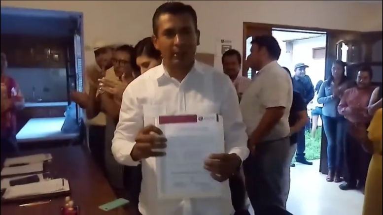 La constancia de mayoría fue entregada por el CEEPAC y desde ahora es el presidente electo del municipio después de ser el ganador de las elecciones dd pasado 1 de Julio .