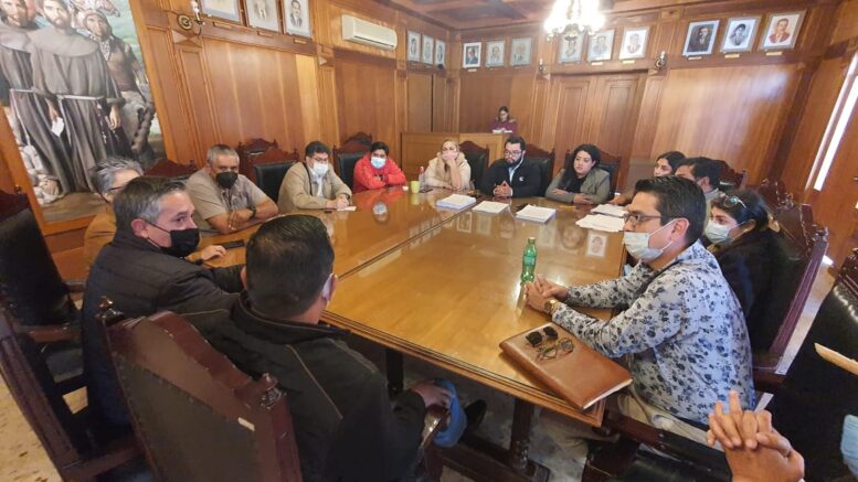 Con el objetivo de establecer una alianza de trabajo e impulsar el Turismo en Rioverde, el alcalde Arnulfo Urbiola Román conjuntamente con nutrido grupo de prestadores de servicios representados por empresarios como Aldo Verástegui, Alejandra Sánchez Pérez, Jafet Pérez Flores, entre otros miembros de la iniciativa privada, dialogaron en la sala de cabildo esta mañana.
