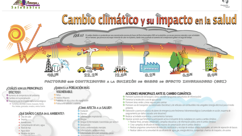 A consecuencia de las constantes variaciones del cambio climático que influyen en los determinantes sociales y medioambientales de la salud, la Secretaría de Salud a través de sus siete Jurisdicciones Sanitarias proporcionarán y difundirán información sobre las amenazas que plantea el cambio climático para la salud humana.