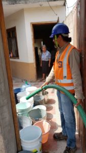 La intención es que la gente pueda contar de esta manera con agua, mientras se restablece la presión necesaria, para que prosiga la distribución normal a través de la línea de conducción, una vez que ya por la noche se trabajó en la reparación de la ruptura de la tubería del pozo principal, lo cual habrá de tardar varias horas.