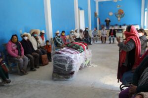 -A través de la Delegación del INAPAM se acudió al Ejido de Progreso, en donde se entregaron más de 110 cobijas.