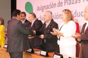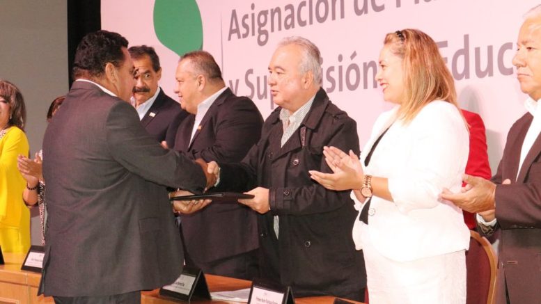 El Secretario de Educación de Gobierno del Estado, Joel Ramírez Díaz, encabezó el evento de asignación de plazas temporales con funciones de dirección y supervisión en educación básica ciclo escolar 2019-2020 en el que se otorgaron 54 nombramientos con la presencia de notario público, además de representantes sindicales, el presidente de la Asociación Estatal de Padres de Familia, así como rectores y directores de Instituciones de Educación Superior.