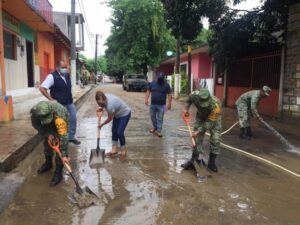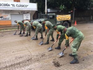 Es por ello, que efectivos adscritos al 36 Batallón de Infantería arribaron este jueves al municipio de Coxcatlán para llevar a cabo labores limpieza de calles y desasolve de arroyos.