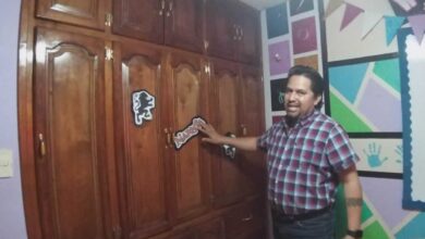 “El pizarrón está manchado, pero funciona; los libreros eran muebles que yo tenía en casa y los adapté. Porque las clases se van a dar por este medio, mi niña me dijo que tomara la tele, el cable y su habitación para que pudiera trabajar, ya que me tocan las clases de 13:30 a 17:00 horas”, describe el profesor.