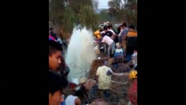 En el material videográfico se observa a muy corta distancia cómo en el borbotón de gasolina los pobladores inclsuive formaban sus cubetas o bidones.