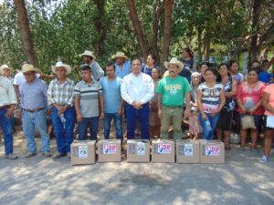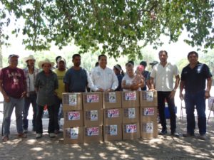 En la comunidad de El Zapote se realizó la entrega de 190 despensas, las cuales contienen artículos de la canasta básica, mientras que en Paso de los Herreros fueron 40.