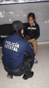Elementos de la SSPE resguardan a menor Karla Daniela; esta en aparente buen estado de salud.