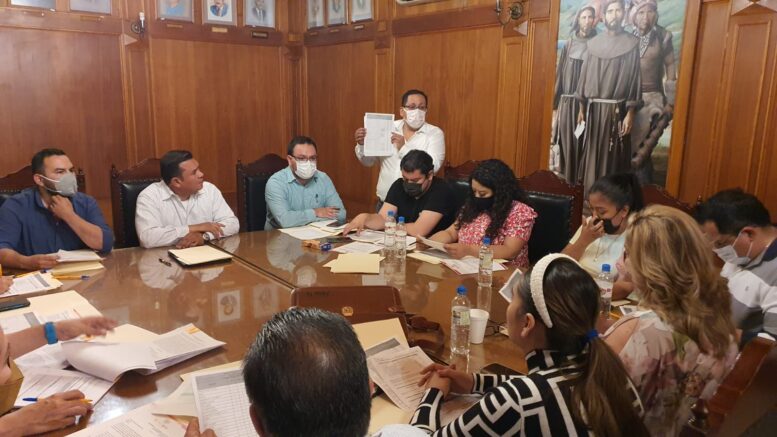 Por unanimidad los miembros del cabildo aprobaron la actualización de plazas del tabulador de puestos y salarios para el ejercicio 2021, ante la presencia del alcalde Arnulfo Urbiola Román.