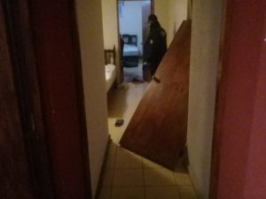 El joven trato de defenderse y logro tomar al sujeto por sus ropas iniciando un forcejeo que origino que la puerta de su departamento se rompiera saliendo varios de los vecinos quienes con gritos lograron que el sujeto saliera del lugar corriendo.