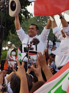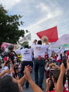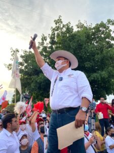 En el escenario y frente a más de 2,500 personas congregadas en el lugar el candidato de la coalición Sí por Rioverde conformado por los partidos PRI- PRD Y CP Arnulfo Urbiola Román se comprometió a mejorar el bienestar de las familias rioverdenses llevando al municipio a ser el más seguro de todo el Estado Potosino.
