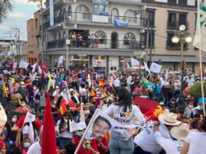 Un gran contingente, llenaron la Calle Morelos en su camino hacia la plaza principal.