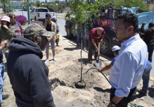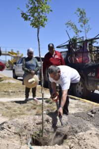 Franco Coronado Guerra y el titular de ecología Onésimo Gonzales Costilla, iniciaron con la plantación de los primeros árboles que darán vida e imagen al camellón central, a los trabajos se sumaron los regidores Flor Eugenia Torres, Rosa Verónica Rivera y Mario Hernández García, así como la organización civil encabezada por comerciantes de la zona y autoridades eclesiásticas.