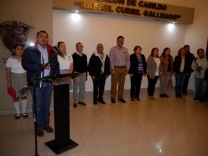 En su mensaje, el Secretario del Ayuntamiento Luis Fernando González Castañeda, agradeció a los presentes estar en el acto cívico, que por motivos del clima, se realizó en el Salón de Cabild+o “Rafael Curiel Gallegos” e invitó a los habitantes de esta Ciudad a participar en las acciones de saneamiento, deseándoles a por adelantado un feliz Día del Amor y la Amistad.